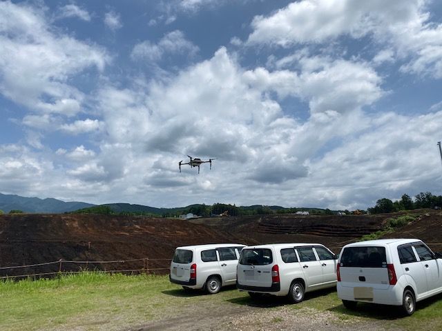ドローンが現場上空より写真を撮影し、その写真をもとに地面の高さを出し、前回測定時からの高さの変化により移動した土の量を計測しています。これを週に1度行っており、それを目安に進捗状況を確認しています。
