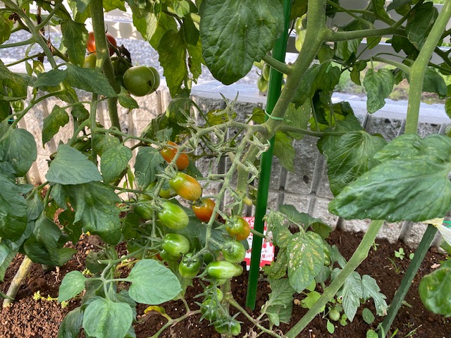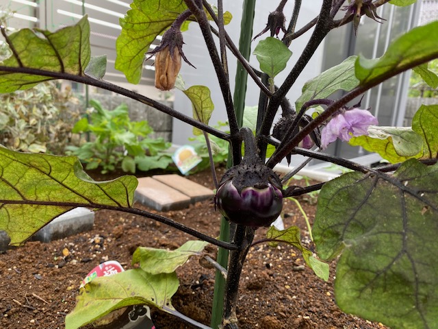トマトも少し色づきはじめ、ナスも実を付けていて楽しみです。