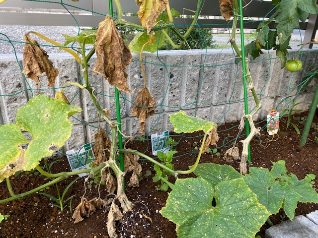 我が家のきゅうりの元気がありません。何本か収穫できていますが、いつ枯れてしまってもおかしくない状況。実家のきゅうりは枯れてしまったようで、なにか気候の問題でしょうか。