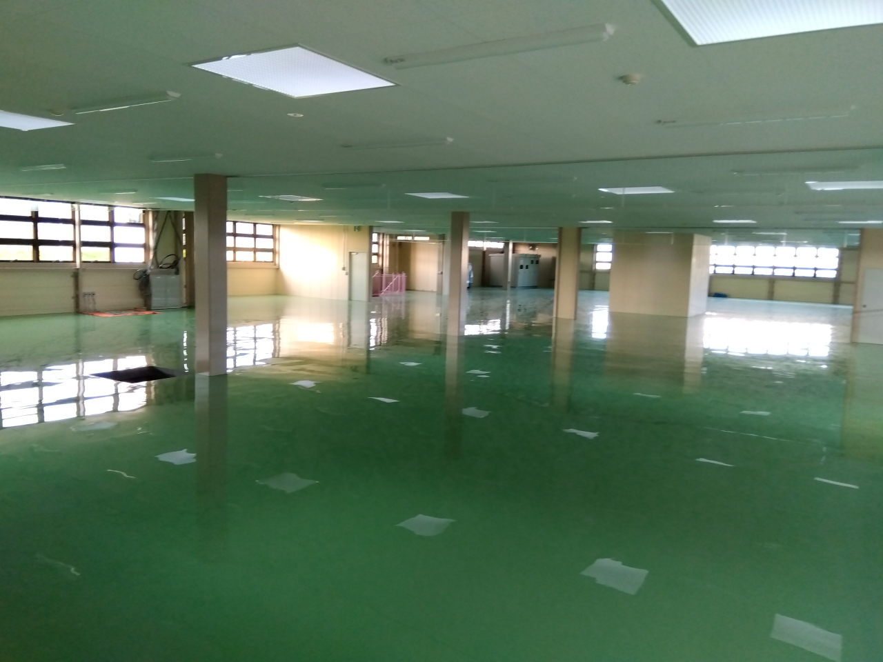 仕上がった建物内部の写真です、床が塗装され印象がガラッと変わりましたね!