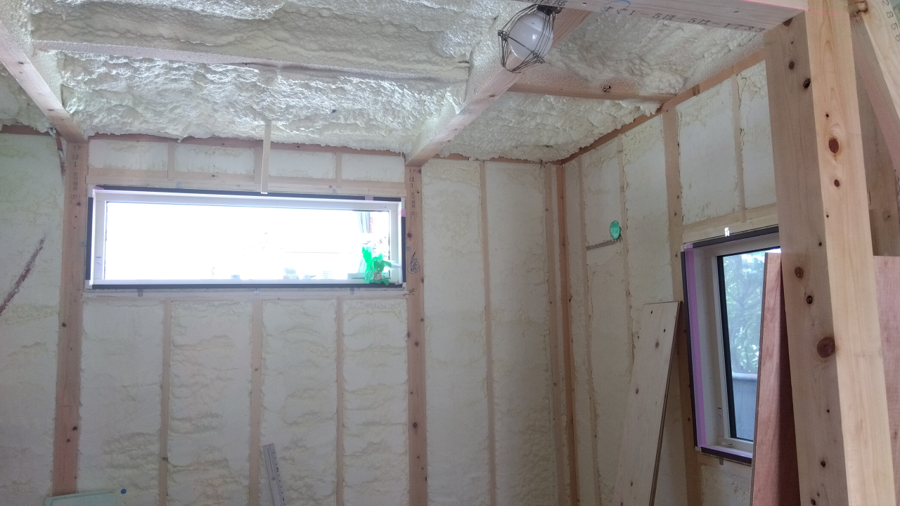 断熱材を現場吹付にしたので、簡単に良い結果が出ました!(目標値 0.7でした)