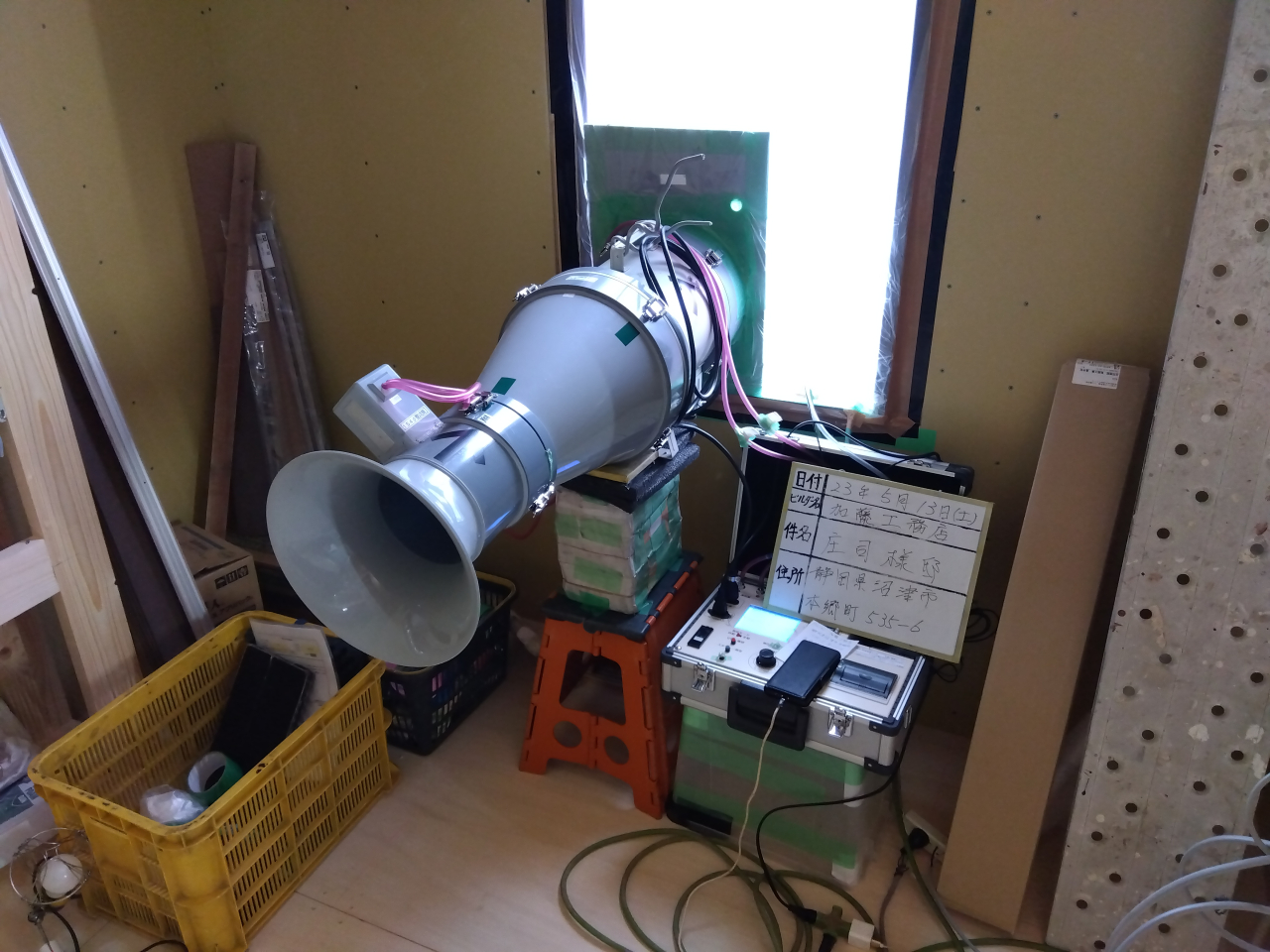 施工中の一戸建て住宅、気密測定を行いました。
