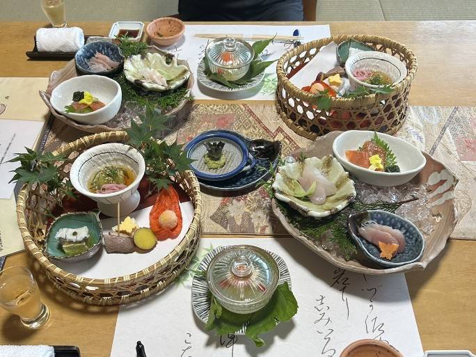 写真は載せきれないので、夕食の先附・前菜・造りの写真だけ載せます。
