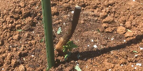 圃場D・Eに昨年5月に植え付けし、昨年の夏、鹿による被害で幹が折れ、葉も全て落